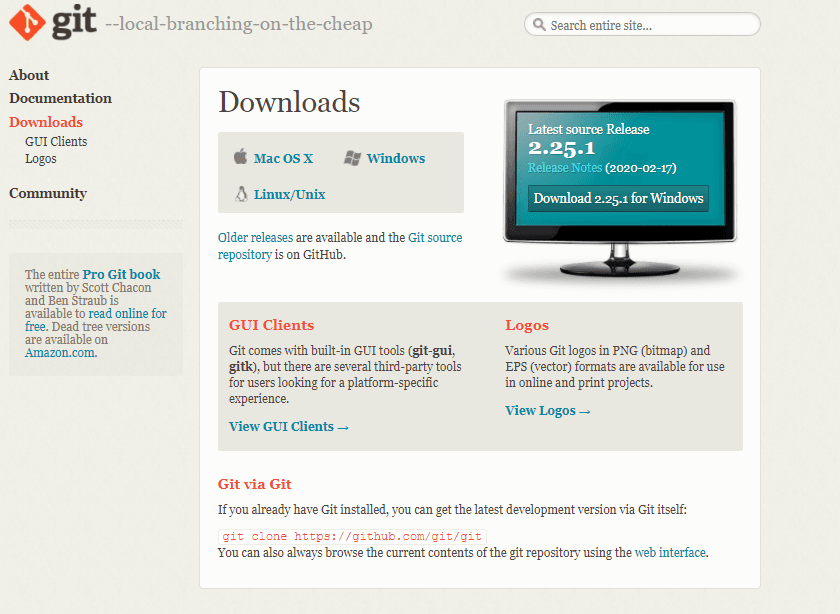 - 淘宝下载 :Git for Windows https://npm.taobao.org/mirrors/git-for-windows/ (国内、速度快)