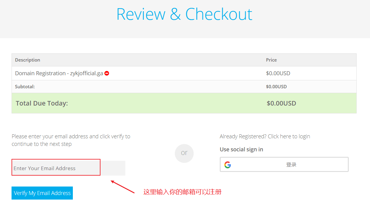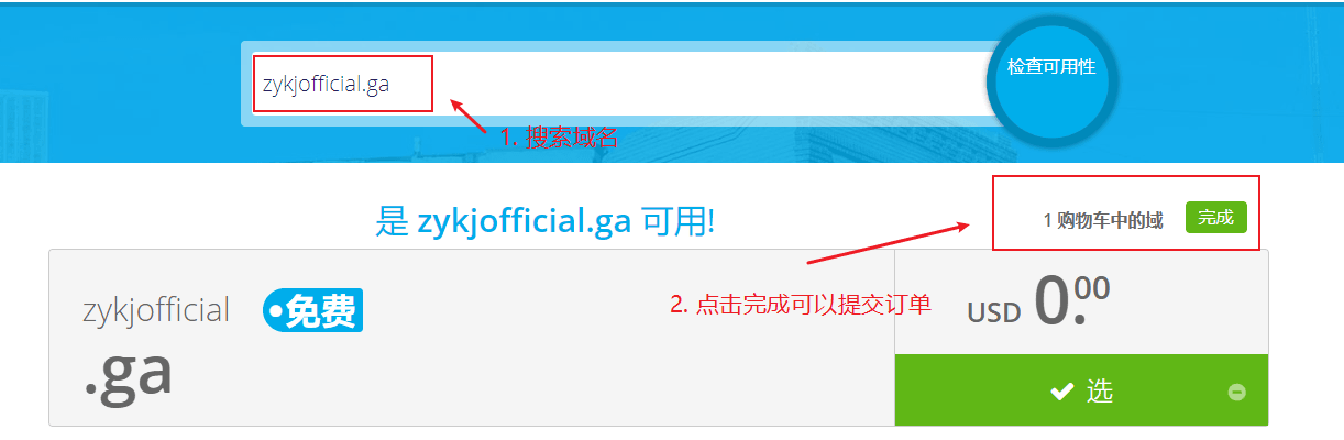 xxxxx.后缀可以选中一个域名、如: zykjofficial.tkPeriod将日期修改为12 Months @ FREE点击继续。过了12月可以继续续费