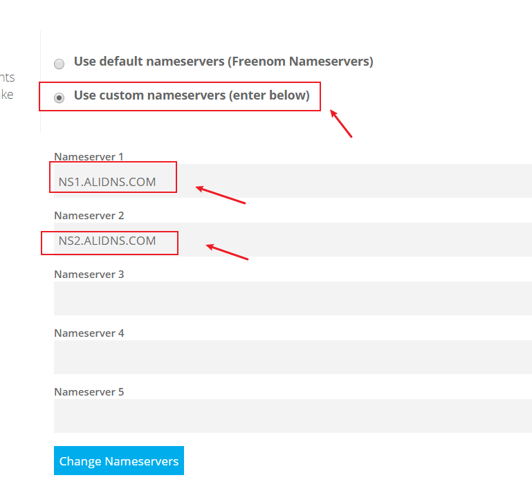 Management Tools选择Nameservers将阿里云的 DNS 服务器