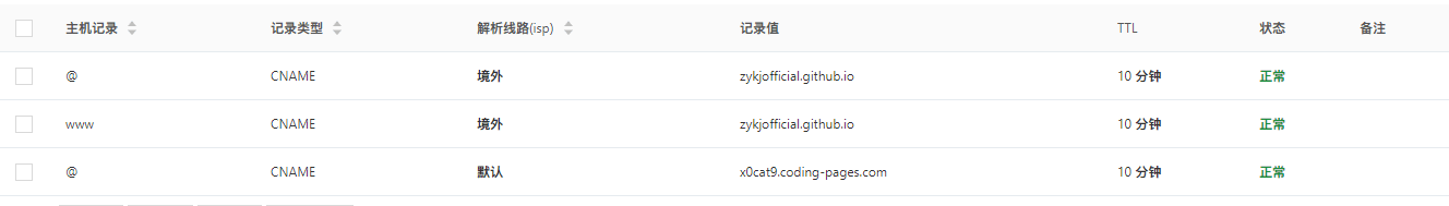 因为Github的国外的、所以要将 xxx.github.解析到境外 Coding
