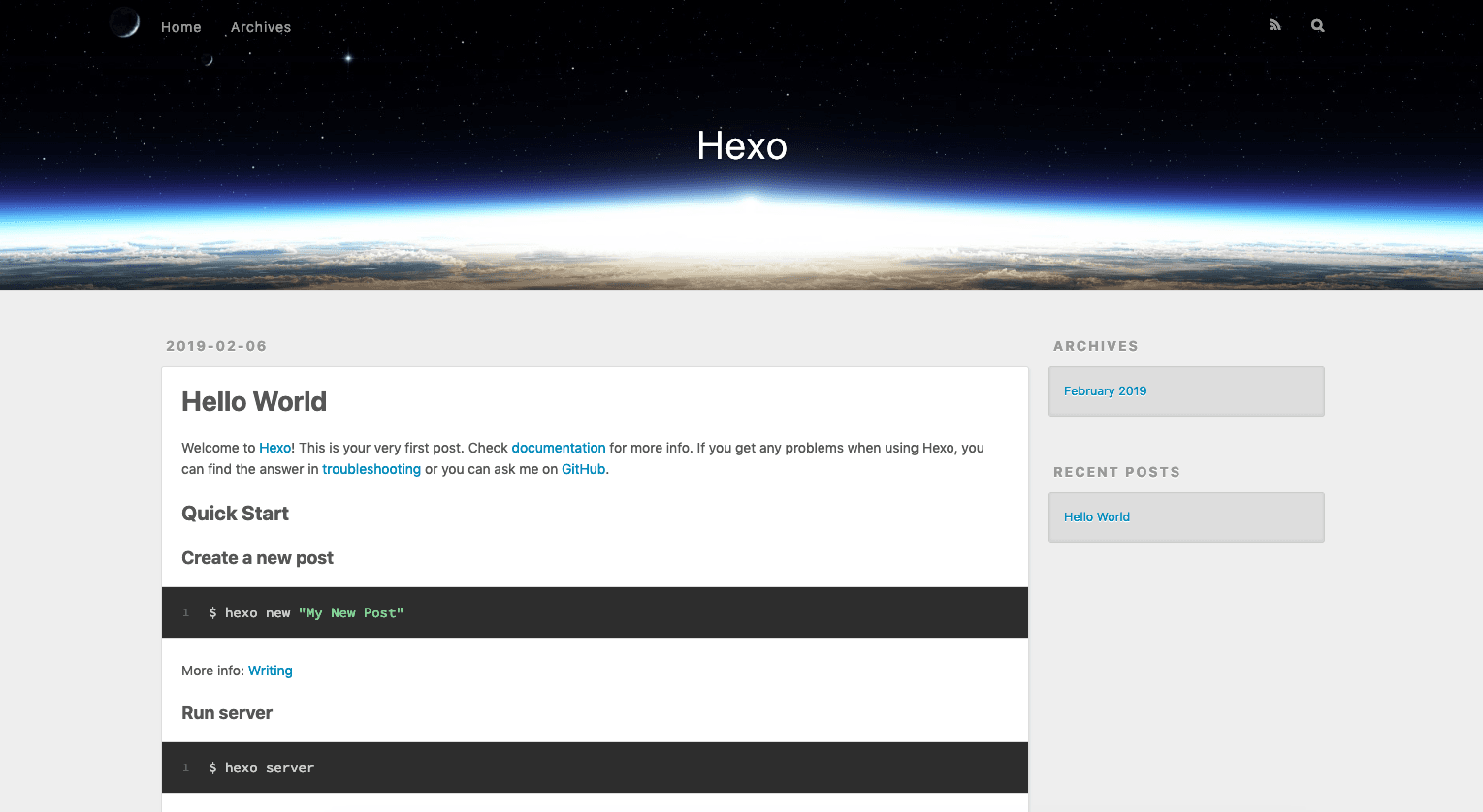 Hexo 是一个快速、简洁且高效的博客框架。Hexo 使用 Markdown(或其他标记语言)解析文章,在几秒内,即可利用靓丽的主题生成静态网页。